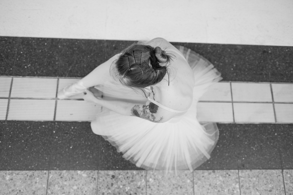 • verdeckter  Halbakt in schwarzweiß