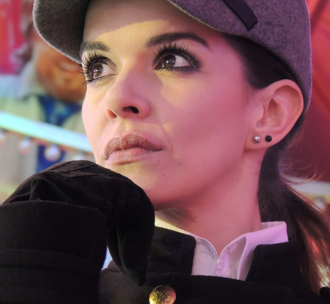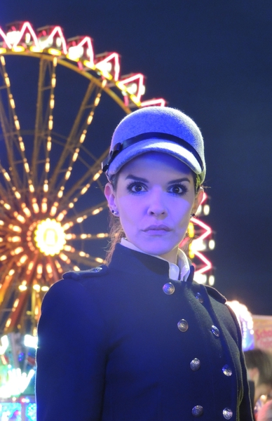 "Gegensätze" hier gezeigt durch Vanessa, eine schöne aber sehr coole Frau im bunten Treiben eines Jahrmarktes
